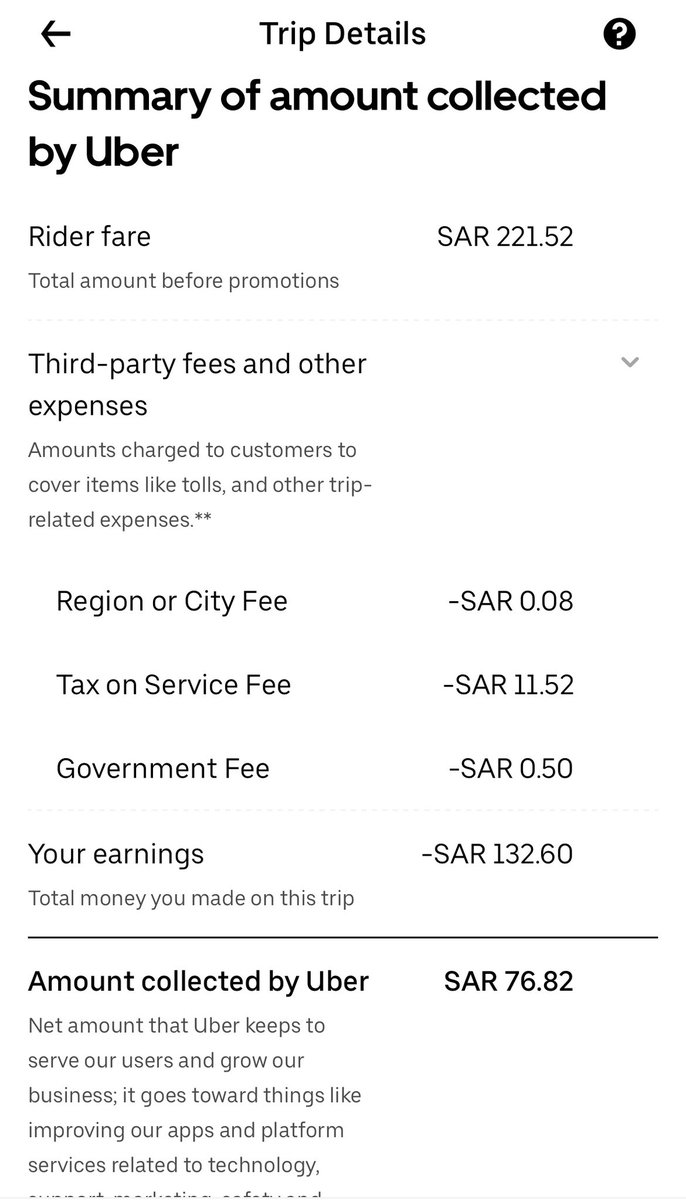 جاني مشوار إلى الطايف مدة المشوار ساعتين، واكيد برجع فاضي وهذه كمان ساعتين، عبيت ١٠٠ ريال بنزين واخرتها يطلع الحساب ١٣٢ ريال وجماعة @Uber_KSA يطلع لهم ٧٧ ريال، أنا صفي لي ٣٢ ريال بس. هكذا تبغوننا نعيش يا @MCgovSA@HRSD_SA@Saudi_TGA.وين رؤية ٢٠٣٠ ورفاهية المواطن وفرص الدخل ؟