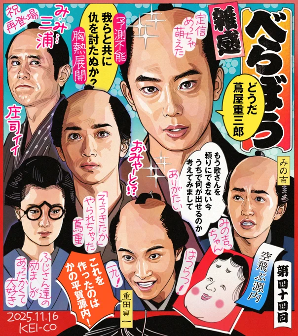 本日もご覧いただきかたじけ茄子🍆 第44回「空飛ぶ源内」、ご感想、お待ちしています🦊 見逃しは👇