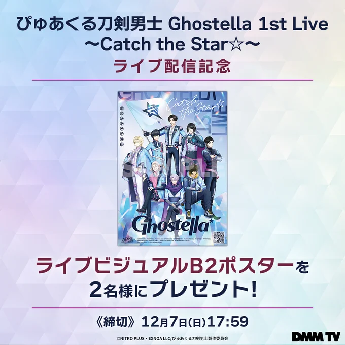 / ぴゅあくる刀剣男士 Ghostella 1st Live ~Catch the Star☆~ ライブ配信記念🎊 \ 【ライブビジュアルB2ポスター】を 抽選で2名様に🎁 ⏰12/7(日)17:59まで 1️⃣