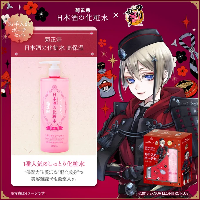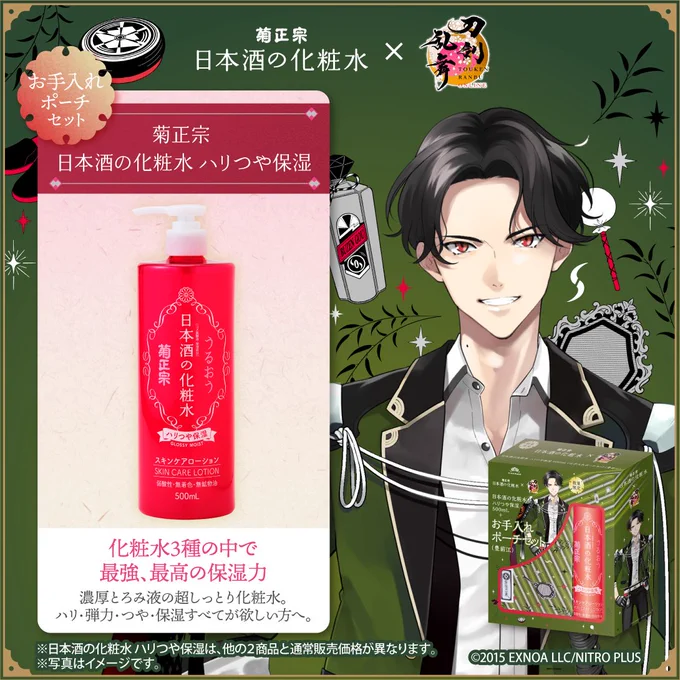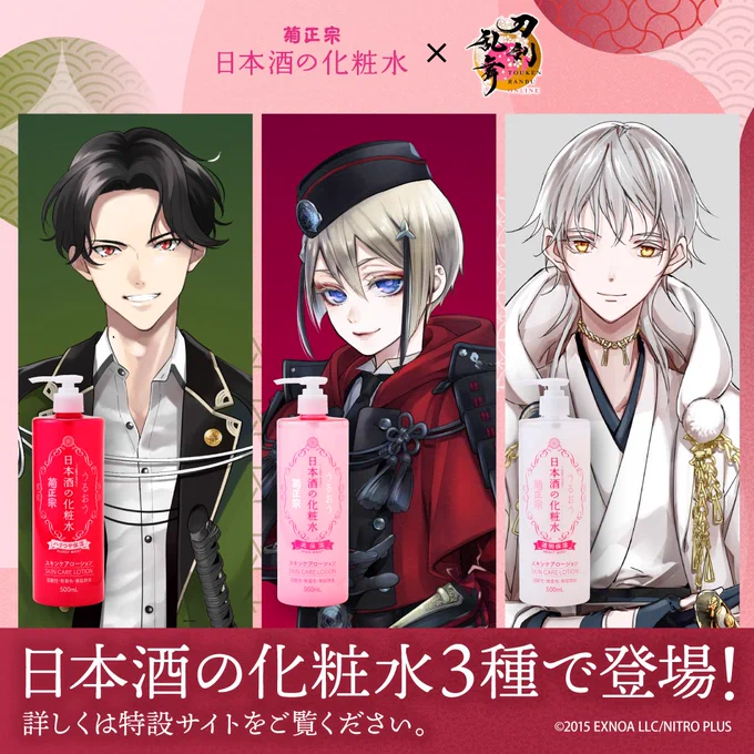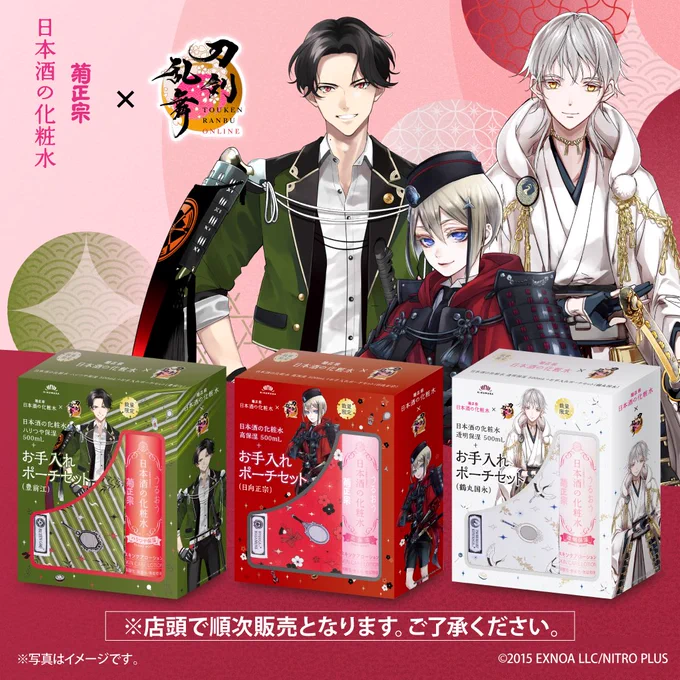 ONLINEコラボ!第2弾 刀剣男士3振りとコラボした日本酒の化粧水セット、美容液セットが本日より発売です! 店舗によっては販売時期が異なります。ご了承下さい。