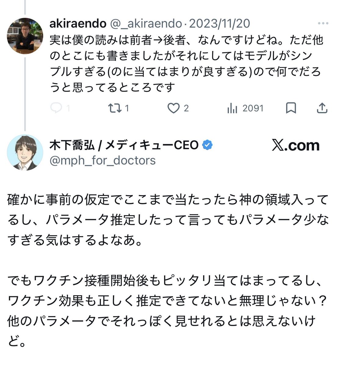 西浦氏が「ワクチンなし」での死者数などを計算した反実仮想論文(Sci Rep 2023-10)の Figure 1(↓)の緑線は、「反実仮想シナリオ計算の予測」だとされてきました。