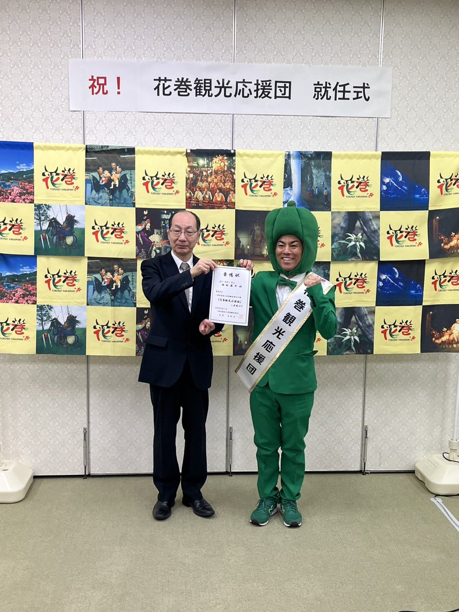 本日なんと! 花巻観光協会様より 📣「花巻観光応援団」📣 の委嘱を受けました🫑 地元花巻市の魅力をもっと知って、みなさまにお届けし、花巻に来ていただくきっかけの一助になれるよう頑張ります🫑 吉本新喜劇座員岩手住みます芸人花巻観光応援団のよこっちピーマンをよろしくお願い致します🫑