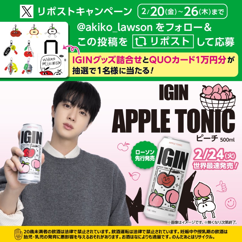 \2月24日(火)ローソンで世界先行発売/IGIN APPLE TONIC 新フレーバー🍑PINKOM(ピーチ)🍑発売記念♪ ①