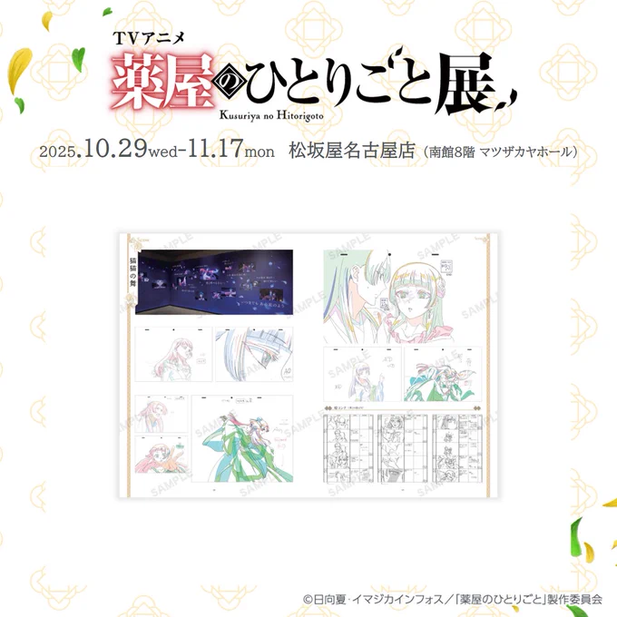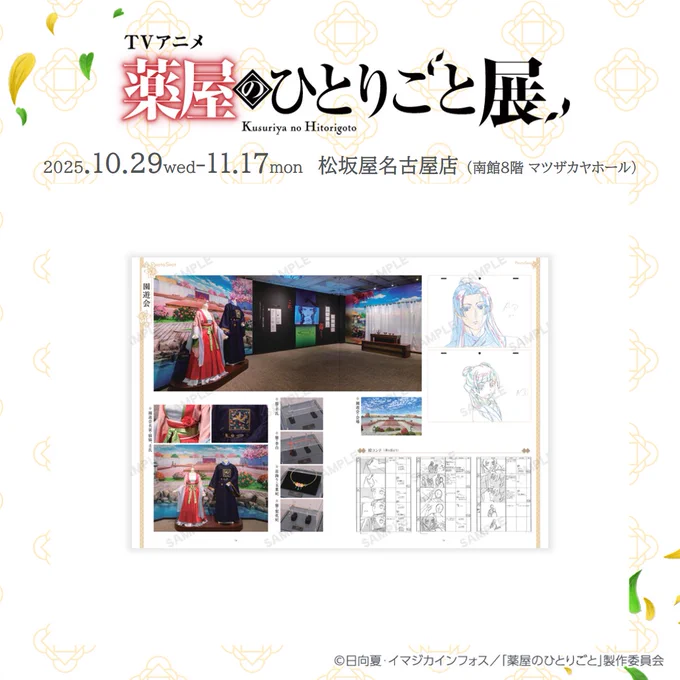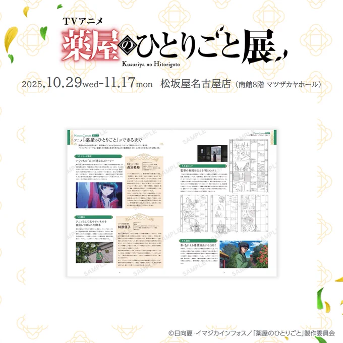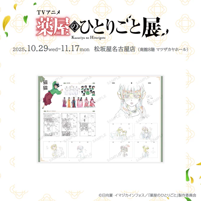 /🍃━━ 展示会公式図録のご紹介🌸 ━━━━━━━━━━━━━━━━ TVアニメ『薬屋のひとりごと』展 公式図録 愛知会場にて好評販売中! その内容の一部をご紹介✨ 展示された絵コンテや原画をはじめ、会場では撮影できないエリアの展示物も収録! さらに悠木碧さん、大塚剛央さんのスペシャルインタビューも掲載。 本展の感動をそのまま手元で楽しめる一冊です。 ※全国巡回終了後、事後通販を予定しております。