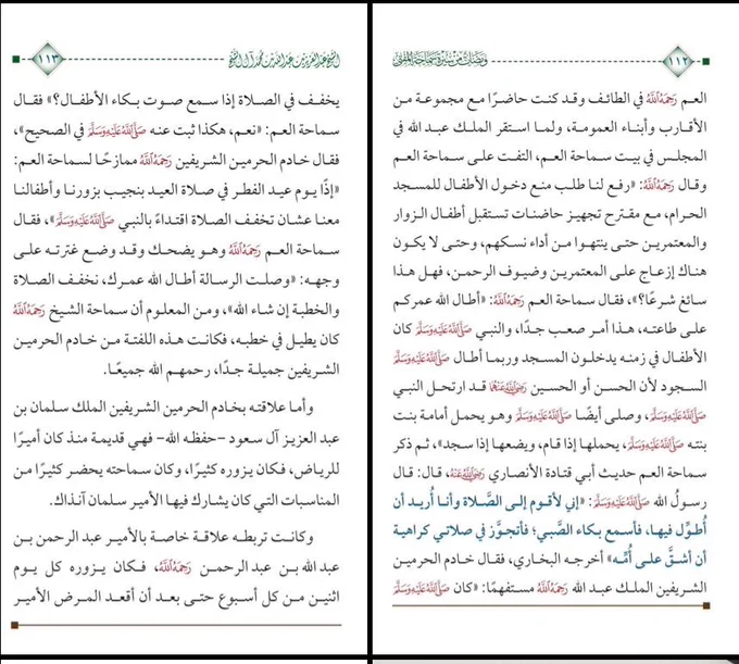 الملك عبدالله لسماحة المفتي: بنجيب بزورنا عشان تخفف علينا الصلاة اقتداءً بالنبي صلى الله عليه وسلم قصة لطيفة وقعت بين الملك عبدالله وسماحة المفتي عبدالعزيز ال الشيخ رحمهما الله تبين عمق العلاقة بين ولاة الأمر والعلماء في الدولة السعودية أعزها الله، وما يقوم عليه هذا الترابط من احترام متبادل وتقدير للرأي الشرعي. فالعالم يُبدي ما يراه دون تكلّف، والحاكم يوقر ويُجِلّ، وهذه السمة كانت ولا تزال من أبرز ما يميز القيادة السعودية في تعاملها مع العلماء منذ عهد الملك المؤسس غفر الله له حتى يومنا الحاضر. المصدر: كتاب ومضات من سيرة سماحة المفتي عبدالعزيز آل الشيخ رحمه الله للشيخ أ.د. هشام آل الشيخ