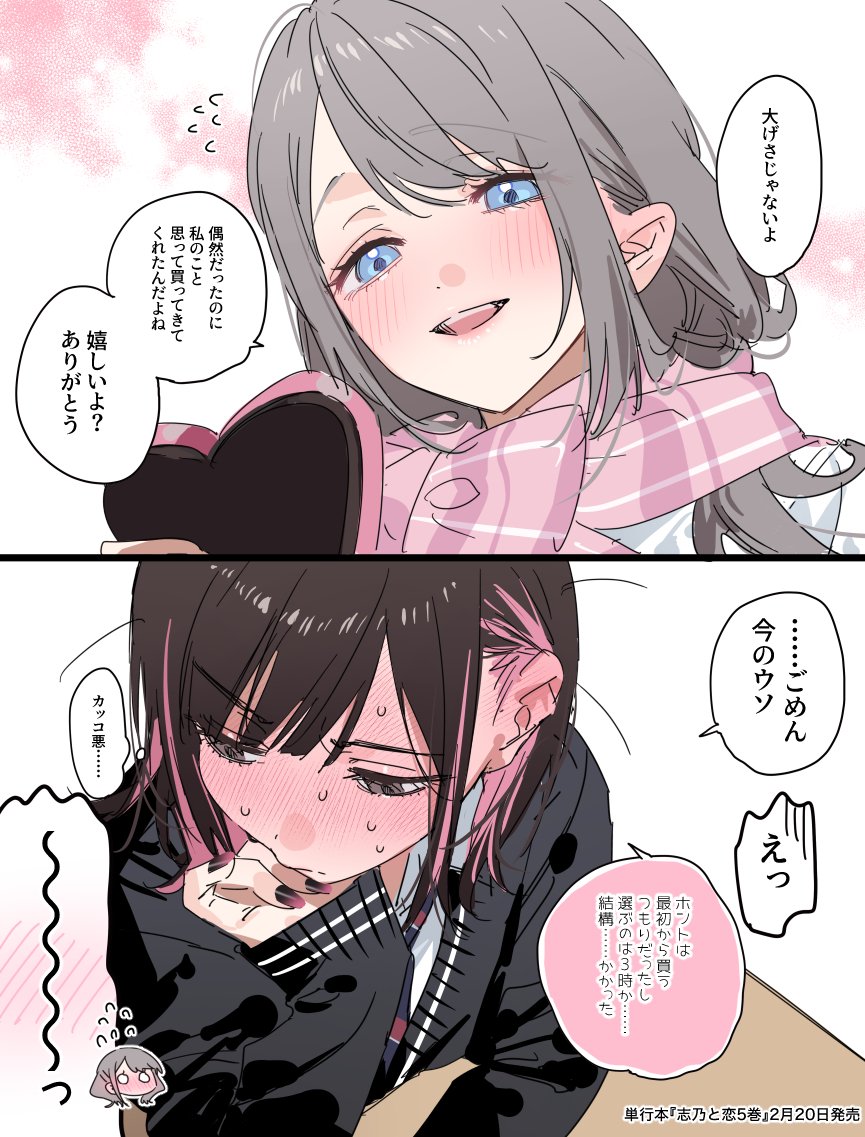 昨日発売した『志乃と恋5巻』に収録されてる描き下ろし漫画の1つです! これ以外にも合計100以上描き下ろしてるのでよろしくお願いします🙏 特典付きご購入⏬