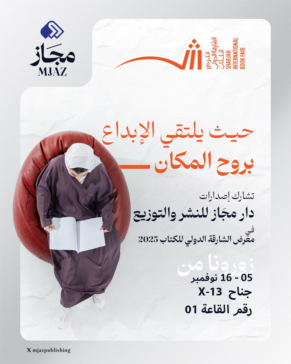 نسعد بزيارتكم لجناح X13 والاطلاع على أحدث إصدارات دار مجاز في