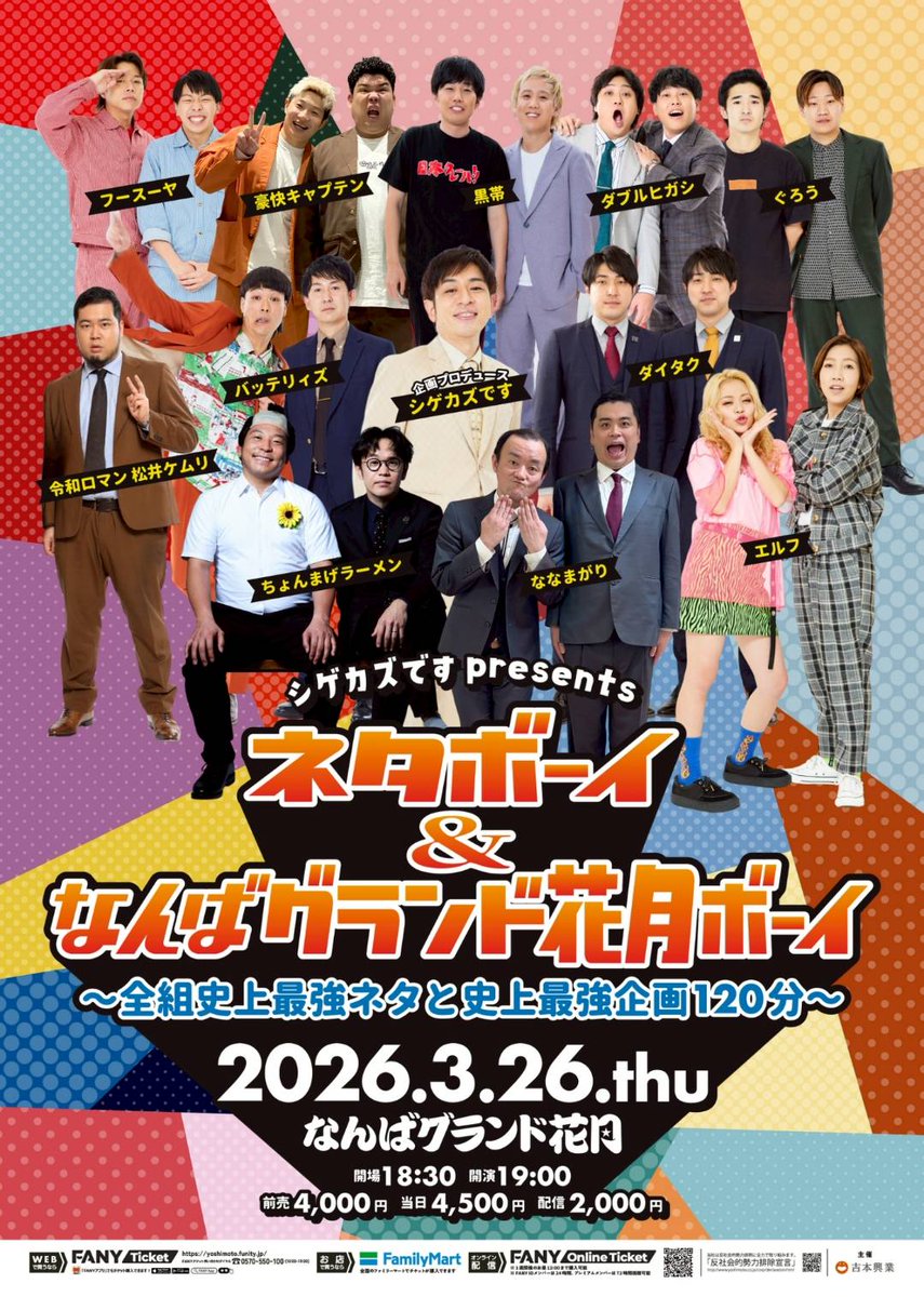 presents]━━━━ ネタボーイ&なんばグランド花月ボーイ 全組史上最強ネタと史上最強企画120分 🎫🔗