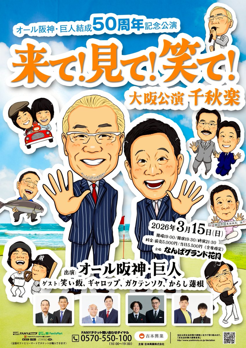 結成50周年記念公演 「来て!見て!笑て!」大阪公演  ̄ ̄ ̄ ̄ ̄ ̄ ̄ ̄ ̄ ̄ ̄ ̄ ̄ ̄ ̄ 📍3月15日(日)19:30開演 出演: