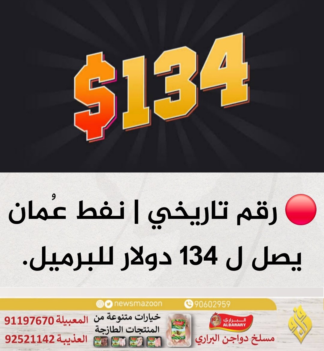 🔴 رقم تاريخي | نفط عُمان يصل ل 134 دولار للبرميل.