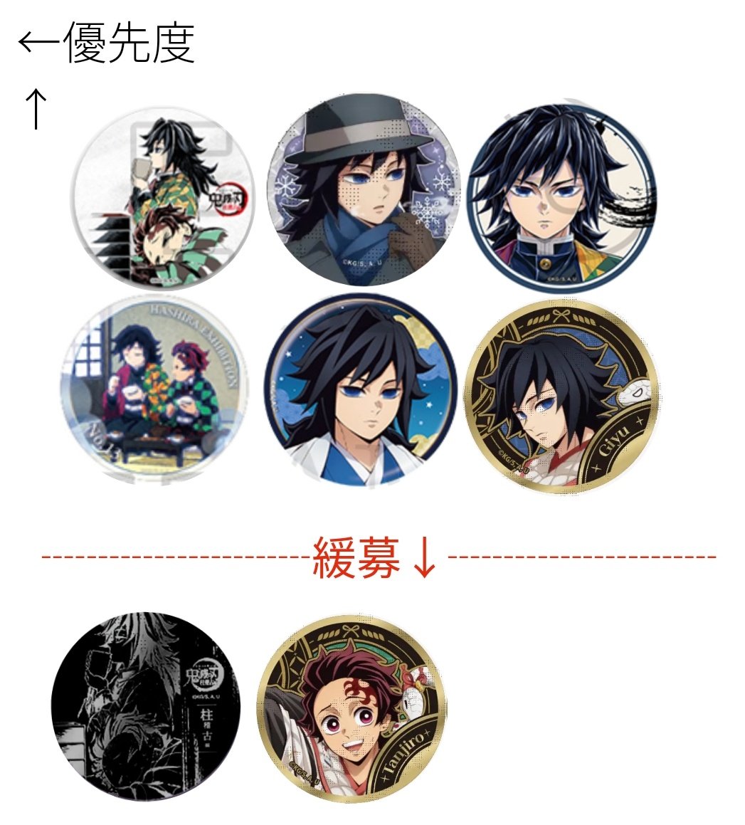 RP不要 【捜し物 探し物】鬼滅の刃 缶バッジ 2025/12/26現在 緩募は優先缶バッジ含むお取引。