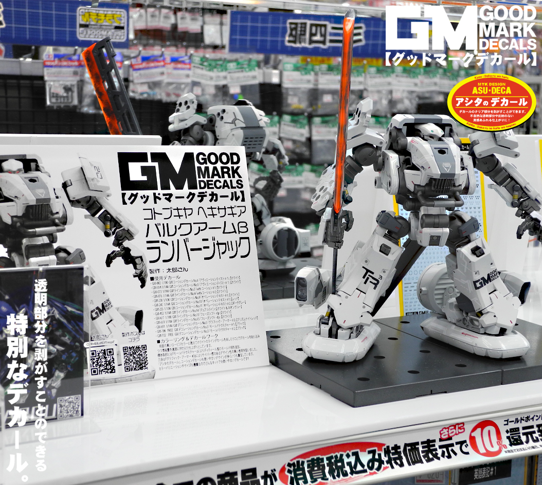 によるヘキサギアバルクアームβランバージャック❗️ ボリューミーな機体は迫力満点です!✨ POPは新規でご用意させて頂きました🥰 『フェーズシフト』によるグラフィカルなデカールワークをぜひご覧下さい!😊
