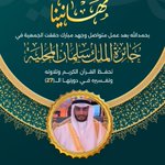 تهنئ #جمعية_مثاني الطالب: عبدالرحمن بن بدر طاهر العنزي؛ بمناسبة حصوله على المركز الخامس في الفرع السادس في #مسابقة_الملك_سلمان_المحلية لحفظ القرآن الكريم وتلاوته وتفسيره في دورتها (27).