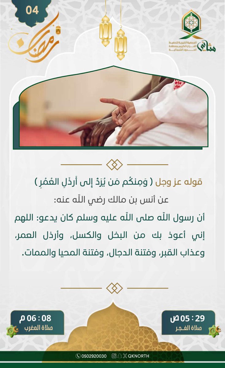 تعلن #جمعية_مثاني الخيرية لتحفيظ القرآن الكريم بعرعر عن بدء التسجيل في المسابقة الأسرية الرمضانية للبنين والبنات لعام 1447هـ، والمقامة في جامع الشيخ ياسين -رحمه الله- في حي المطار.