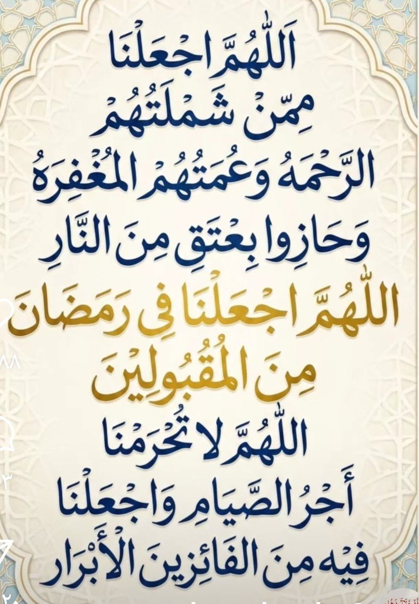 كل عام وانتم بخير بحلول شهر رمضان المبارك اعاده الله علينا وعليكم بالخير واليمن والبركات وصالح الأعمال 🌹 اللهم رحمه ومغفرة وعتق من النار ⭐رمضان كريم ⭐