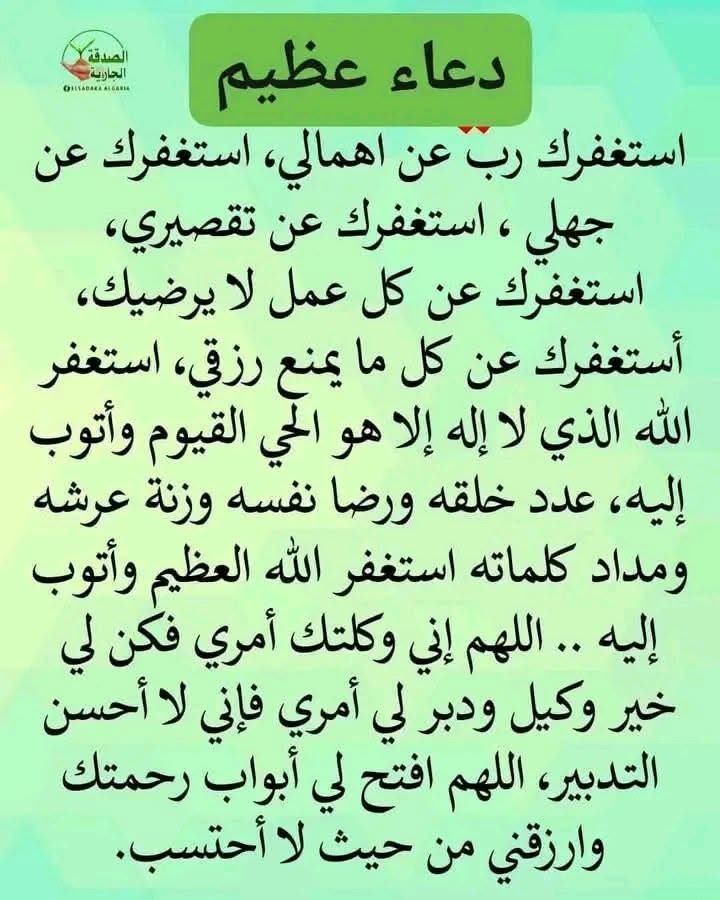 اللهم اجعل عفوك عنا دائم 💐 ورضاك علينا قائم وألبسنا لباس الصحة والعافية جعلنا الله وأياكم من الذاكرين والشاكرين والصابرين وغفرالله لنا ولكم ولوالدينا ووالديكم انه سميع مجيب الدعاء وصلى الله وسلم على سيدنا محمد وعلى اله وصحبه اجمعين 🌹كل جمعه وانتم الى الله اقرب 🌹