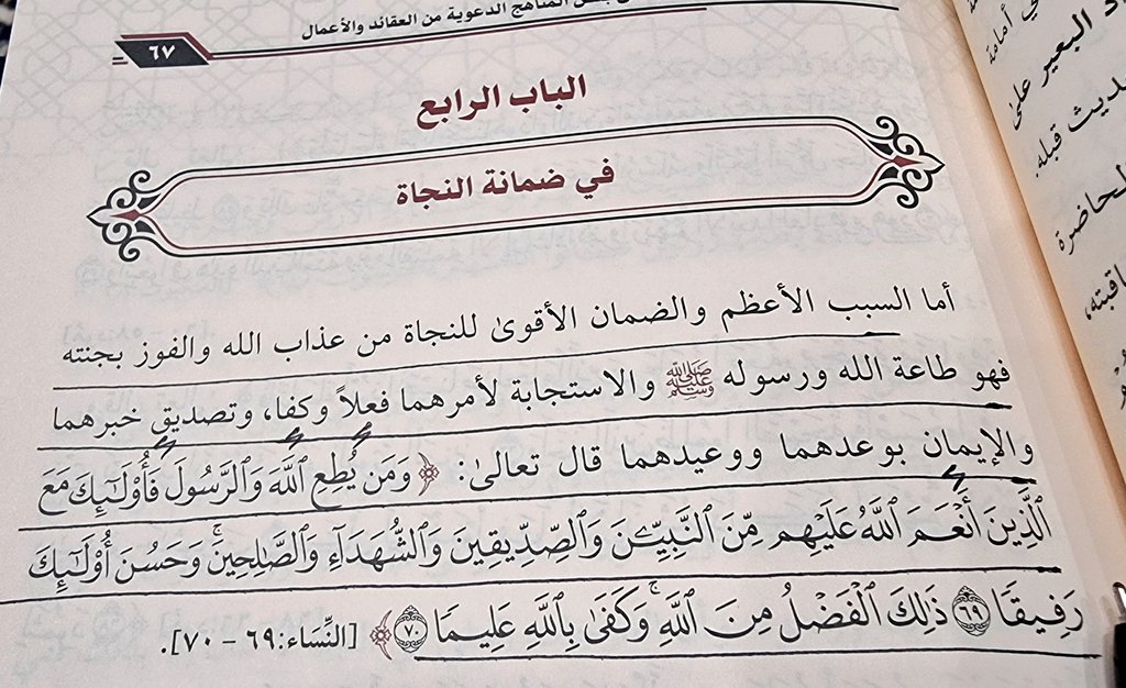 ● فهذه هي ضمانة النجاة وهذا هو سبيل الفوز، وهذا هو طريق الفلاح اتباع لما جاء في كتاب الله وفي سنة رسوله ﷺ الثابتة عنه من غير التفات ولا تأرجح ولا استحسان للبدع ولا أخذ بما قال فلان أو فلان ...