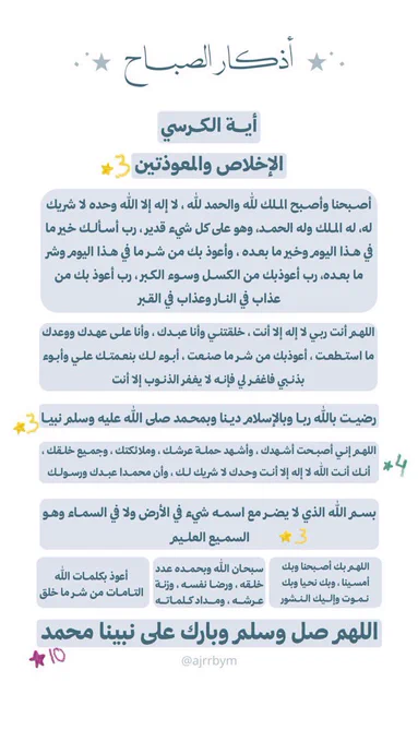 ▪︎ سبحان الله وبحمده عدد خلقه ورضا نفسه وزنة عرشه ومداد كلماته( ٣ مرات )