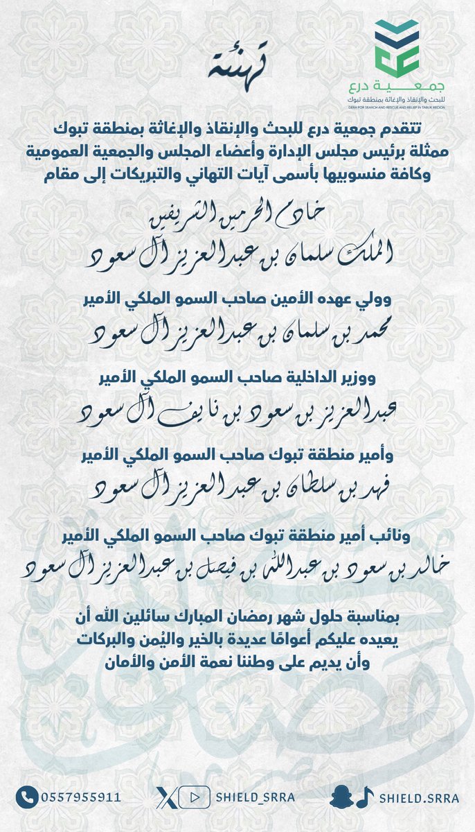 يتقدم رئيس وأعضاء ومنسوبي #جمعية#درع