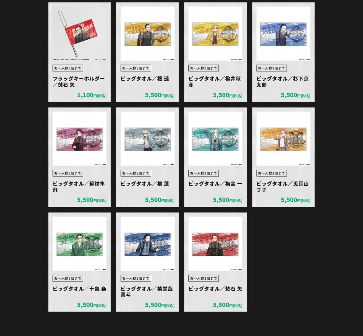 描き下ろイラストを使用した追加グッズ情報を公開✨ 色々な使い方でお楽しみいただける「証明写真館」や、 描き下ろしイラストを大迫力で堪能できる「ビッグタオル」など、豪華ラインナップが登場です👊 詳細は公式サイトをチェック👀