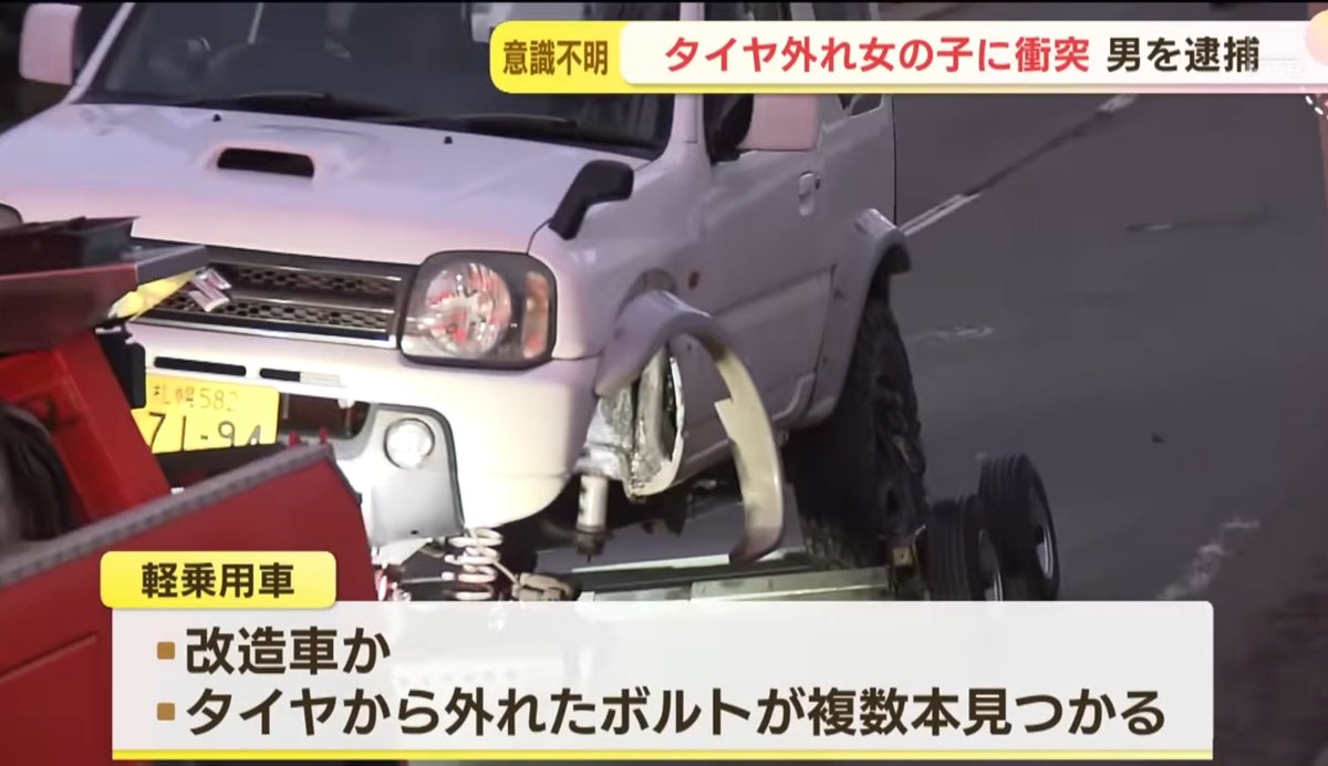 走行中の改造車のタイヤが外れ幼稚園児(4)に直撃→意識不明の重体 @北海道
