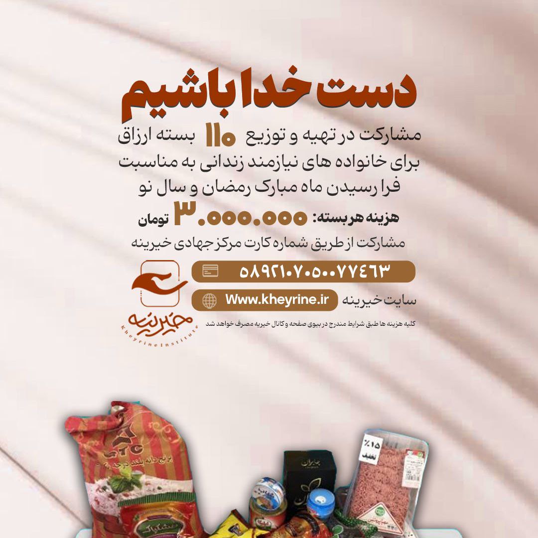 در آستانه سال نو و ماه مبارک رمضان، تصمیم داریم ۱۱۰ بسته کامل ارزاق برای خانوادههای نیازمند زندانی تهیه کنیم